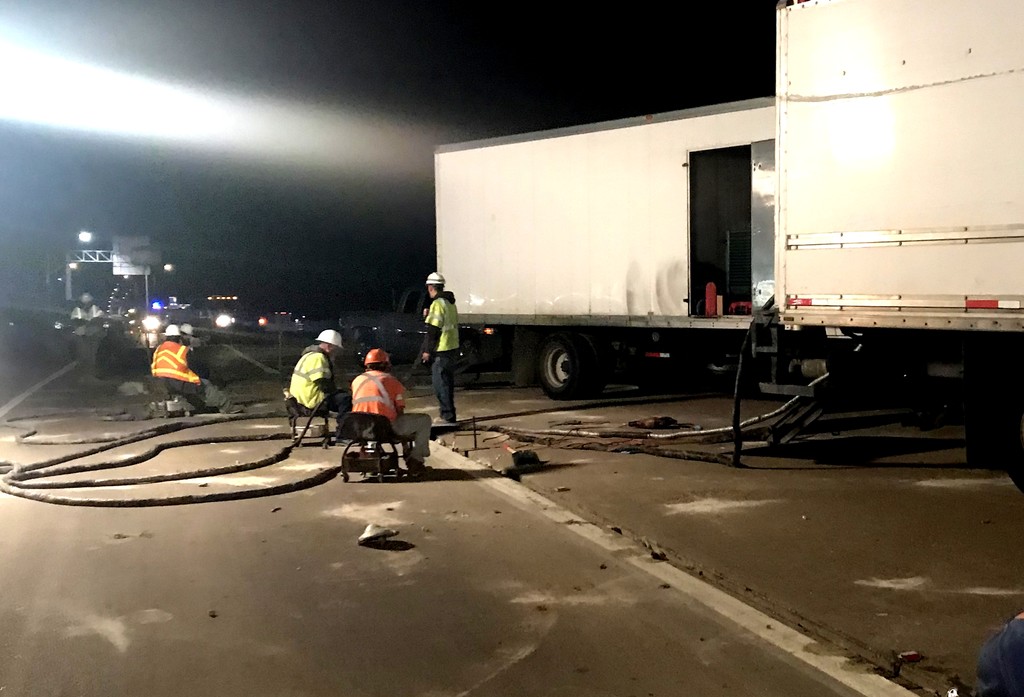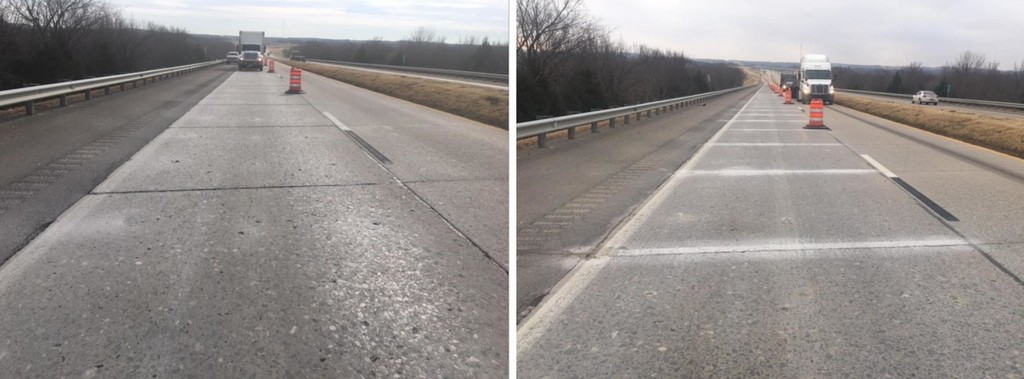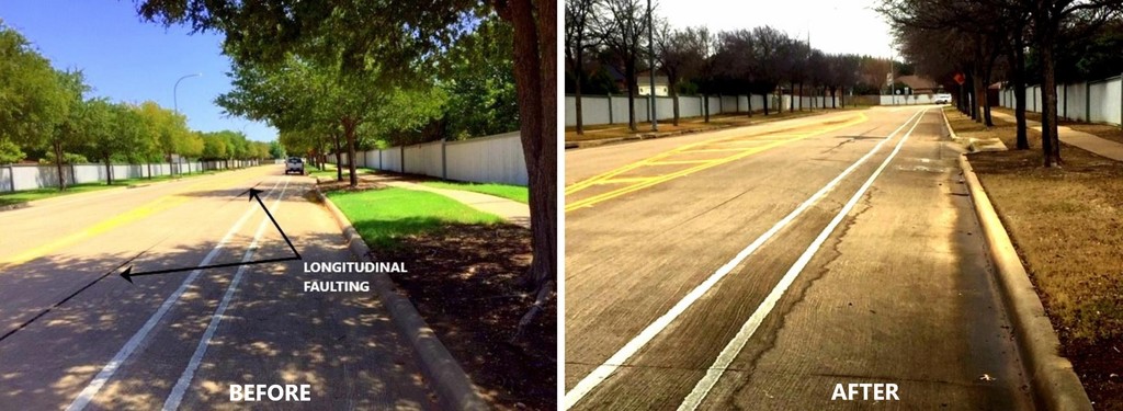 Shown below is a time lapse video of Nortex crews in action. In the project shown below, a general contractor was adding an additional third lane to the existing two lane eastbound/westbound road. However, the existing lanes had transverse faulting throughout the entire 3 mile stretch. The city did not want the faulted lanes adjacent to the new smooth lane, so Nortex was hired on to repair them. Using polyurethane foam injection in combination with polygrinding, we were able to greatly increase the ride quality of the existing lanes, extending the life of the pavement, and avoiding long periods of downtime.