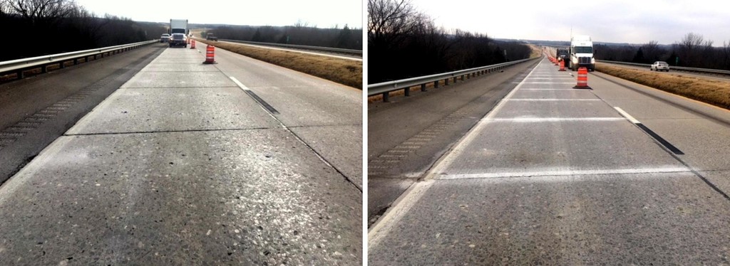 Pictured directly below is a photo that depicts how polygrinding at the expansion joint greatly improves ride quality. In addition, there is a collection of photos from multiple projects that we have completed for city and state clients.