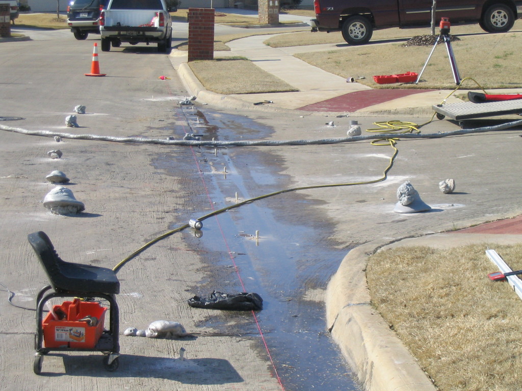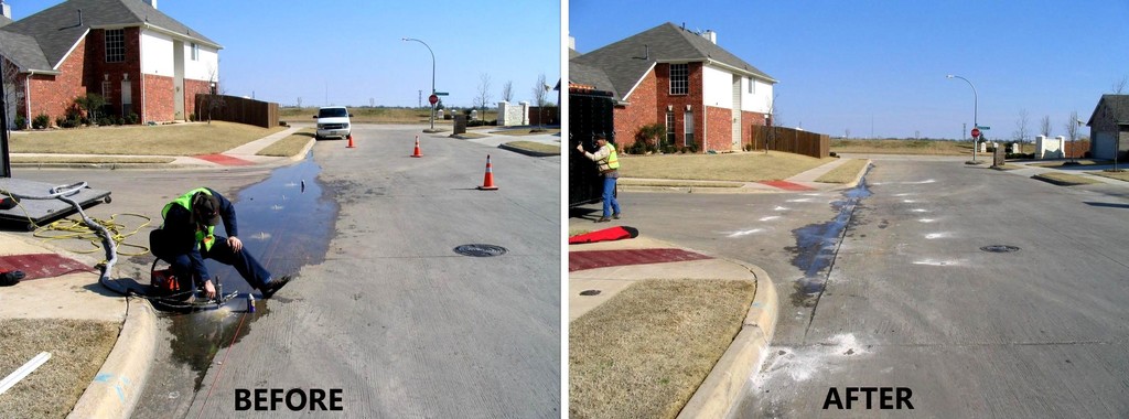 Ponding water, a.k.a. “birdbaths” are a common issue among city streets and residential areas. Homeowners will begin to complain when water stands in front of their driveway, blocking them from their mailbox. These birdbaths are formed as water erodes subgrade soils, causing the pavement to settle. This creates a dip that holds water. At Nortex, our crews fix problems like these every day. Our foam is hydrophobic, so it is unaffected by wet soil conditions and successfully removes unwanted water beneath the pavement. The injection of polyurethane material lifts the concrete to its proper grade, creating positive water flow which removes all standing water. This process strengthens foundation soils, eliminates future pavement settlement, and extends the life of the road for years, even decades.