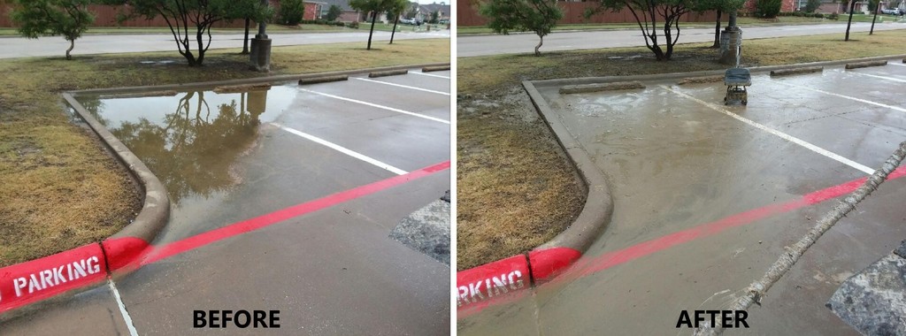 The photos below are a collection of other standing water projects. Ponding water/curb displacement issues are the most common type of problems Nortex crews are requested to fix. On average, Nortex crews may complete 3-4 separate ponding water/curb displacement projects per day. The reliability and convenience of polyurethane foam injection, compared to full depth repair, mudjacking or any other type of solution, is unparalleled.