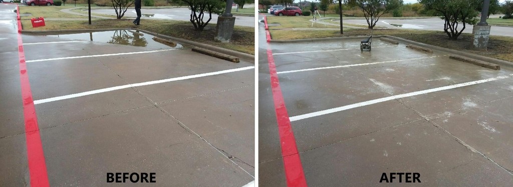 The project below shows a couple parking spaces at an elementary school that had dropped about 5 inches, effectively holding water around the clock. Water had been trapped in the spaces for so long that even the parking curbs were beginning to deteriorate. Despite their convenient location (at the front entrance of the campus), they remained vacant due to the amount of water and debris they contained.